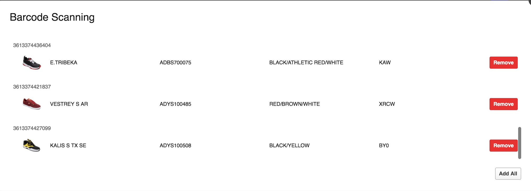 Once you have scanned each product selecting 'Add All' will then add all the products to your active shipment.