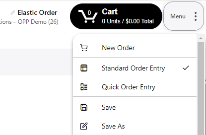 The option to move between Standard Order Mode and Quick Order Mode has been moved to the top of the menu options.