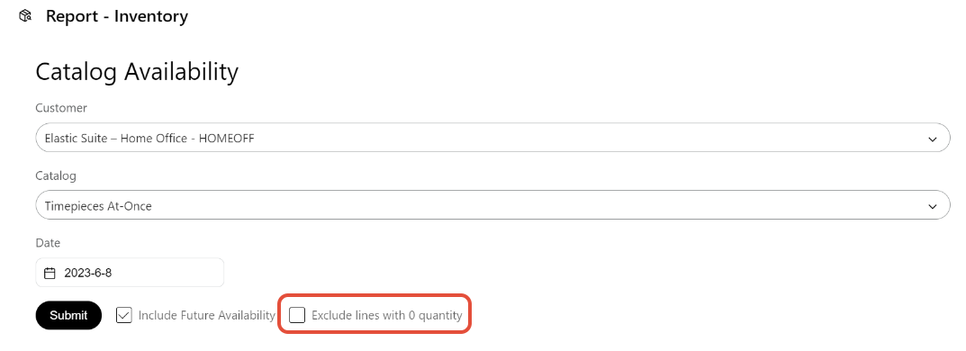 Users will now have the option to exclude unavailable items from the inventory report. By default, the unavailable items are included, but can be excluded by checking the box. Records for items with future availability will be included. If an item has current availability, the available date shown will be the catalog's first live date or today's date, whichever is later.