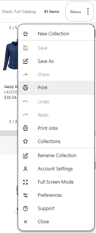 1. Click on the menu in the top-right corner of the Collection builder, and select 'Print'.