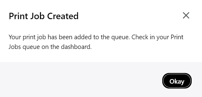 A confirmation will appear that says your 'Print Job Created'.