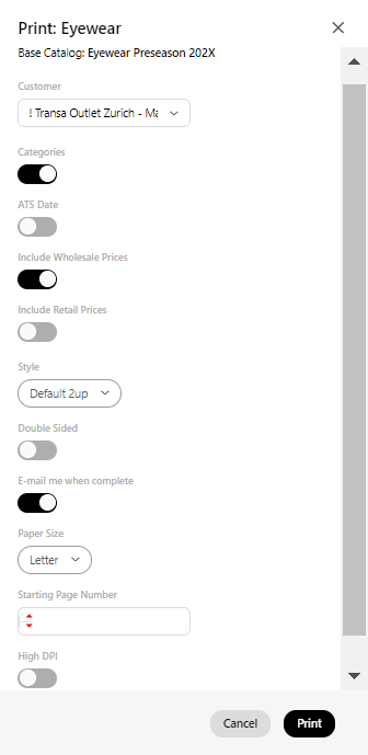 2. Select a customer (this will determine the currency code / pricing of the printed PDF.)