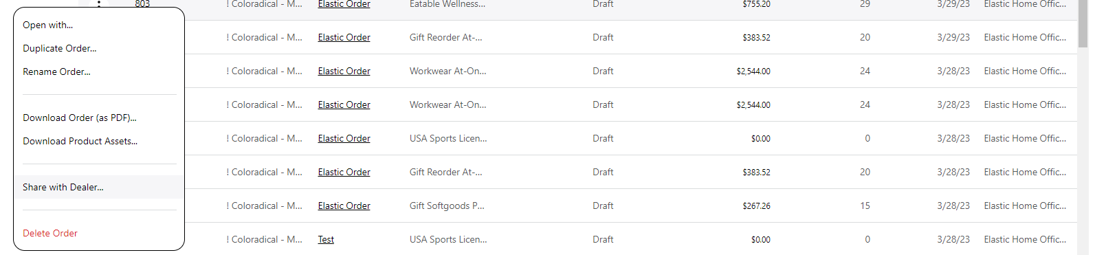 The 'Share with Dealer' feature is a great way to work collaboratively with your dealers on Elastic. Sharing with a dealer allows the dealer to login, see the order that you've shared with them, make edits to the order, and even submit the order. Dealers will receive an email confirmation when an order is shared with them. The rep also has an option to include a message to the dealer, these notes will be shared in the dealer notification email.