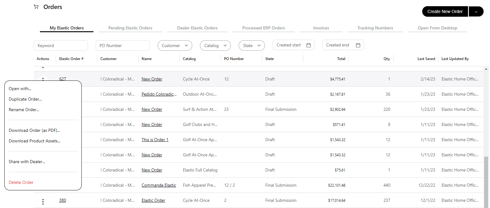 Order sharing is a great way to collaborate with Reps. It is also a great way for Reps to share suggested orders with their accounts, and for buyers to adjust orders immediately to fit their specific needs for a given buying season. There are a couple ways to share orders within Elastic: you can share orders with individual users, or with all of your dealers at once.