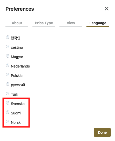 Swedish, Finnish, Norwegian added to Preferences Language Selector