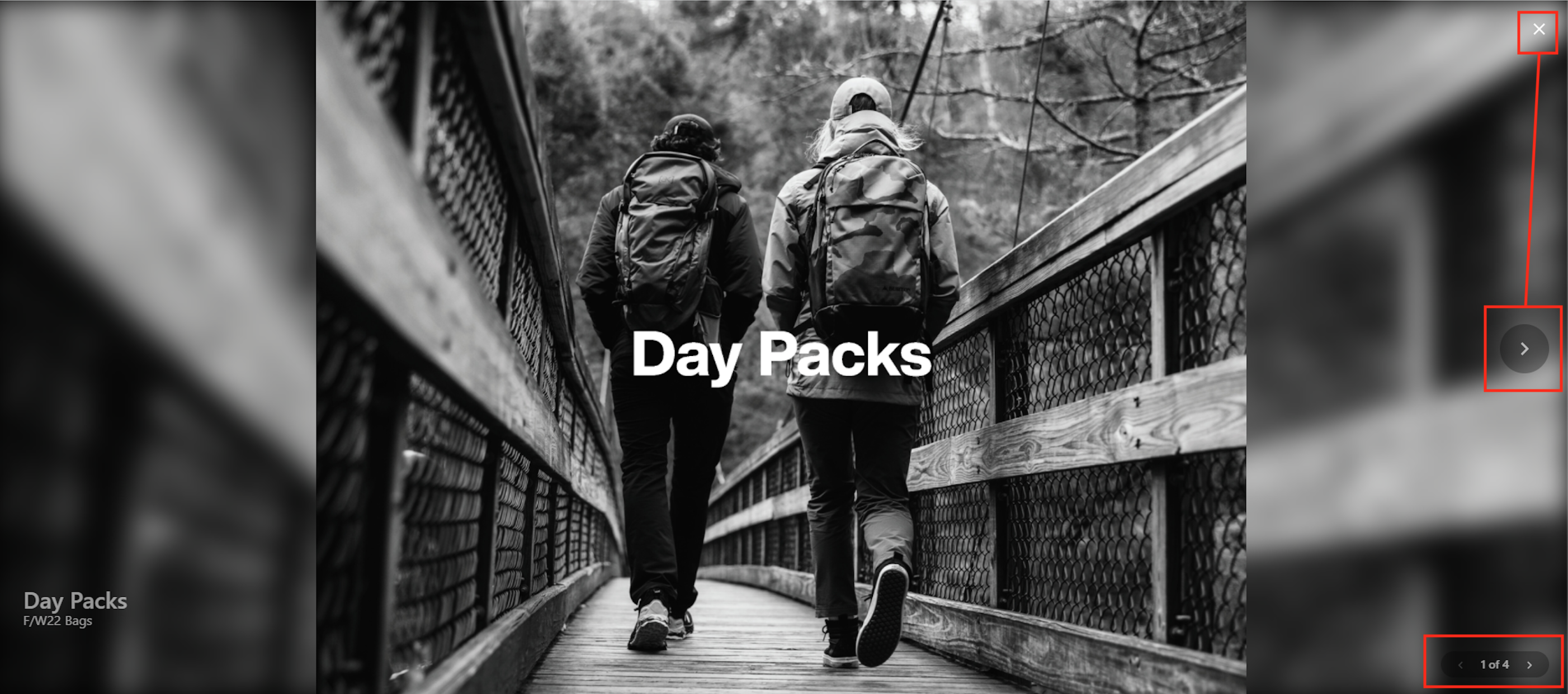 When opening a catalog many brands will provide catalog and category landing pages with brand information. The UI to view these has been updated to allow these to be a simpler interface that is more intuitive on how to use. Clicking the X in the top right or arrow in the middle right will bring you to the products in the catalog or if there are multiple pages you can scroll through them using the arrows with the indication of what page you are on.